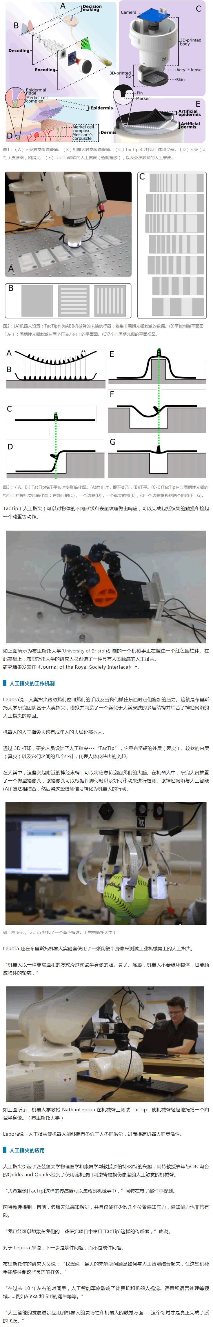 神經(jīng)科學(xué)和機(jī)器人技術(shù)L域正在融合發(fā)展。目前,研究人員打造出了一種具有人類(lèi)觸感的人工指尖。利用仿生觸覺(jué)指尖可以了解人類(lèi)觸覺(jué)的神經(jīng)生理學(xué),可以改善靈巧機(jī)器人的接觸感應(yīng),并可以利用神經(jīng)假肢恢復(fù)截肢者的觸覺(jué)。