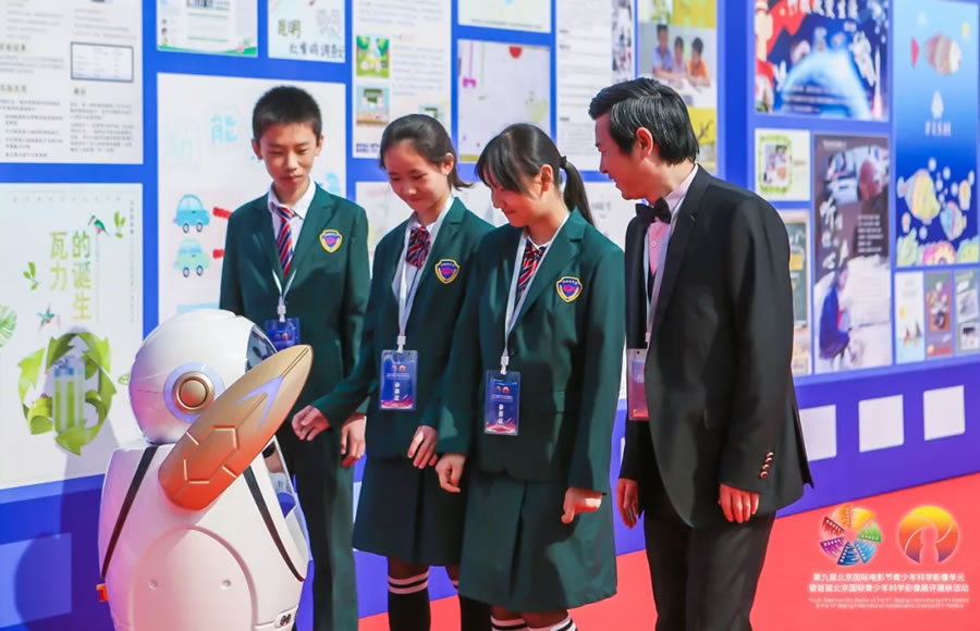 | 2019年4月12日,由北京市科學技術協會指導,北京青少年科技中心、北京青少年科技教育協會主辦的第九屆北京電影節青少年科學影像單元暨屆北京青少年科學影像展評展映活動在北京科學中心隆重舉辦。創澤智能自主研發生產的智能商用服務機器人“創創”精彩亮相,并擔當迎賓角色,引起了來賓的G度關注及濃厚興趣。